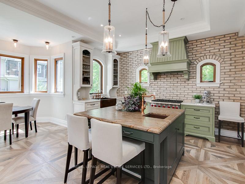 Beautiful custom-built, energy-efficient home with unique personality designed by architect Paul Dowsett and interior designer Phillip Moody. This residence offers cozy, warm elegance with classical flair, designed for comfort and convenient living. Features include brick and stone exterior, bay windows, metal frame, 6+1 spacious bedrooms, 6 spa-like bathrooms, gorgeous centre hall, and an elegant Bellini eat-in kitchen with large pantry. Additional amenities include elevator access to all levels, 4 gas fireplaces, hardwood floors, energy-efficient underfloor heating throughout, third-floor winter garden/recreational room with abundant natural light and city views, walk-outs to decks on 2nd and 3rd levels, skylights, lots of storage, laundry on 3 levels, 2-car heated garage, beautiful heated driveway for 4 cars, separate entrance to finished basement w Nanny's and Entertainment rm, intercom and security reinforcement. Close to BSS, UCC, St. Clement's & York Schools. Walk to TTC, Subway & Yonge street, short drive to downtown. A forever home - a must-see!