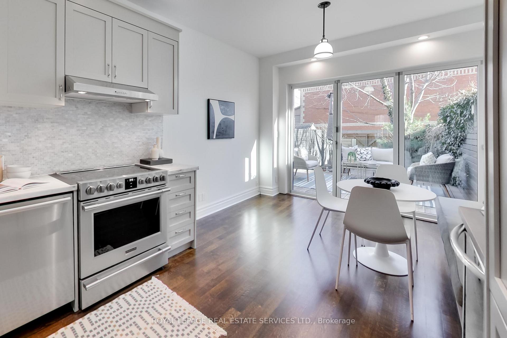 Pretty as a picture and rich with character, this classic red brick Victorian blends timeless Toronto architecture with thoughtful modern renovations in one of the city's most coveted neighbourhoods. Irresistible curb appeal sets the tone with its quintessential Toronto facade, gingerbread peaks and gables, and professionally landscaped grounds, a rare and refined welcome home. Inside, the foyer makes a striking first impression with leaded glass transom detailing above the door and house number, herringbone tile flooring defining the entry, and restored hardwood floors flowing throughout. Soaring ceilings, crown mouldings, and panelled walls showcase the home's Victorian heritage, while extensive renovations ensure modern comfort and style. The main floor offers stunning sightlines to a dramatic glass tri fold window wall at the rear, creating seamless indoor outdoor living. Step out to a landscaped backyard oasis complete with a deck, custom umbrella, raised planters, and mature trees, perfect for alfresco dining and summer entertaining. The eat in chef's kitchen is both stylish and functional, featuring a wine fridge and a built in banquette for casual dining and lounging. Upstairs are three well proportioned bedrooms including a king sized primary retreat with a large closet. The spa inspired bathroom is pure indulgence, offering a glass enclosed double shower with rain head, a deep soaker tub, skylight, and double vanity. Fresh paint throughout means there is truly nothing to do but move in. Don't miss the easily accessible, large unfinished attic. A rare opportunity to own a turnkey Victorian in the heart of Trinity Bellwoods. Live in a true walker's, rider's and biker's paradise close to trendy Queen West parks, restaurants, cafes, shops, and daily essentials, with ample street parking and excellent TTC access.