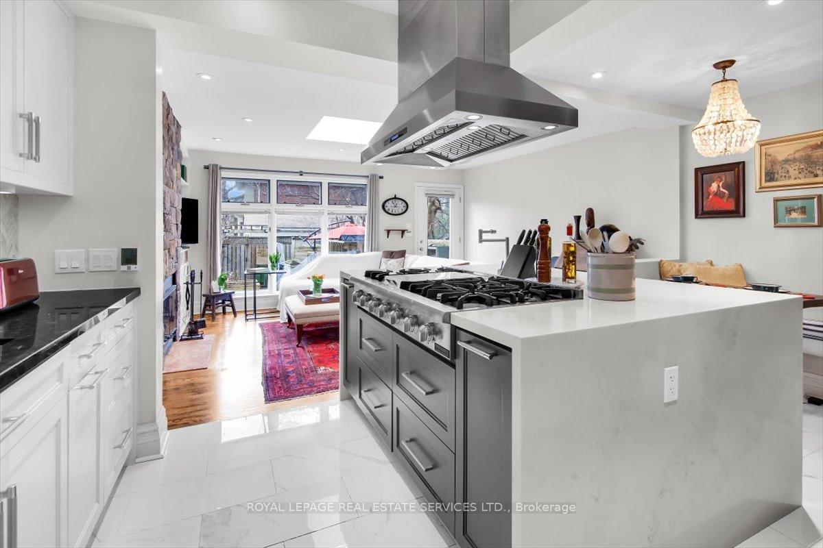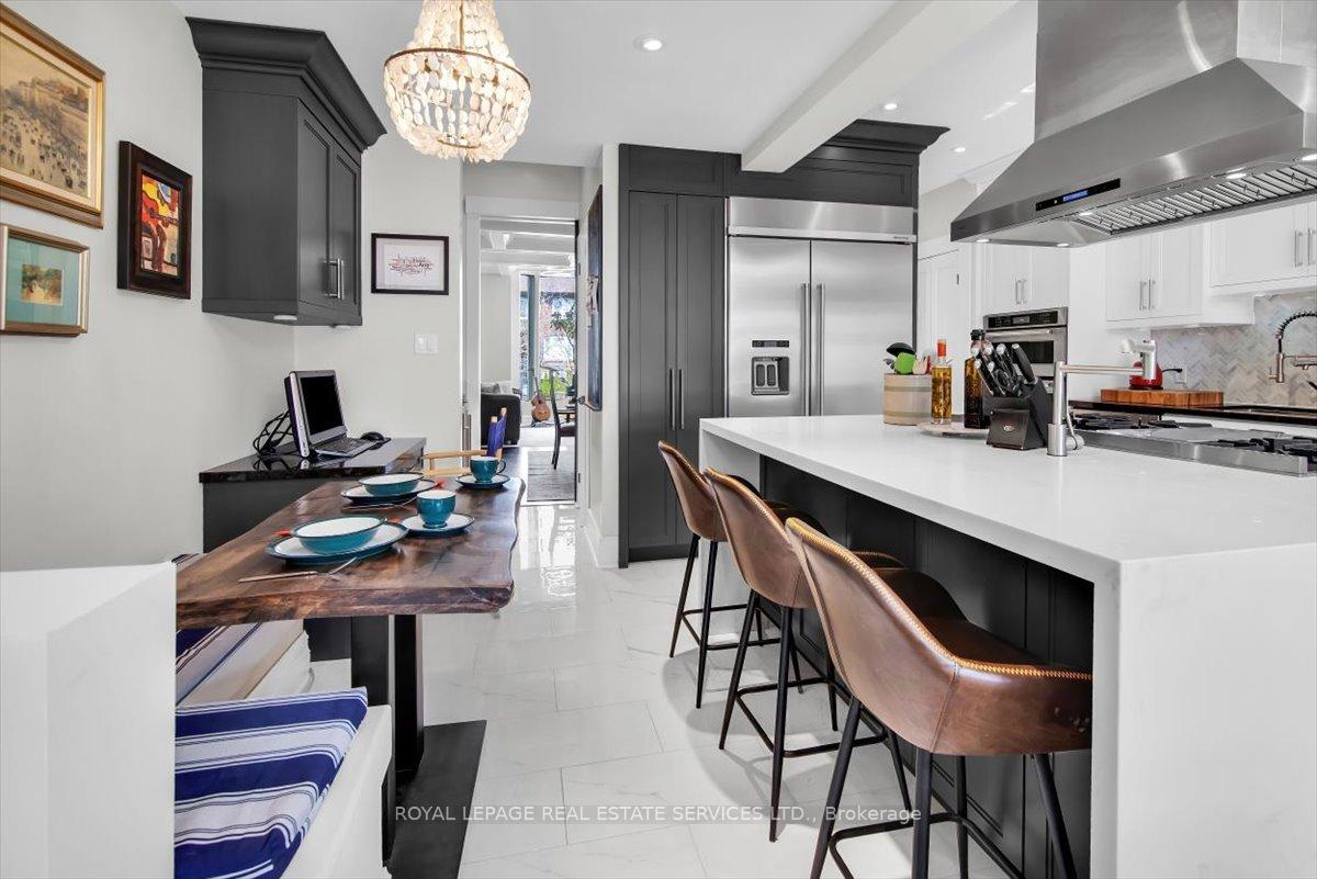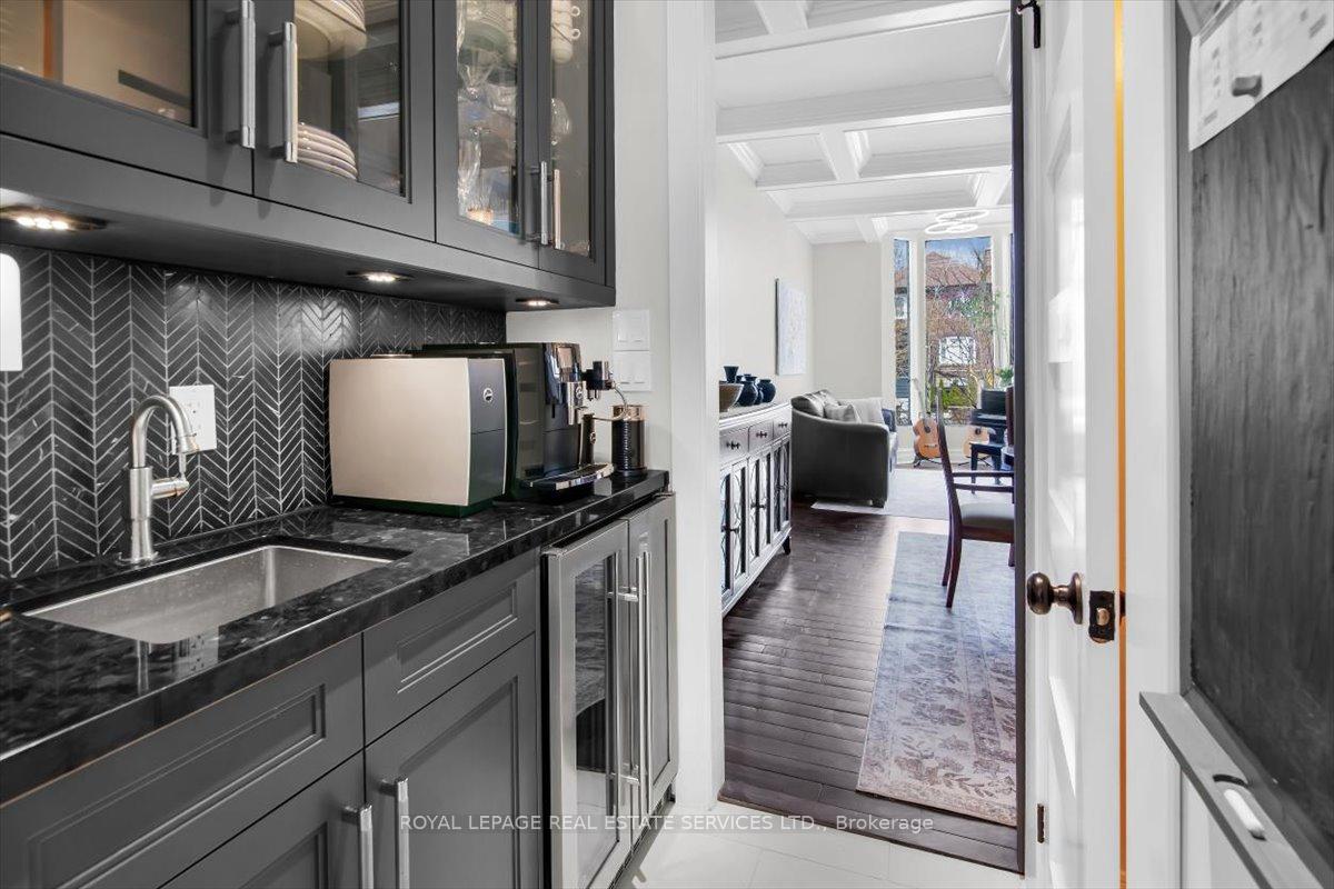 Beautifully renovated 2 storey, 3 bedroom, 2 1/2 bath Moore Park home. Spectacular kitchen/family room with top of the line stainless appliance package, massive centre island, heated flooring, butler's pantry. Open concept family room with hardwood flooring, wood burning fireplace, custom built-in television unit, skylight and walk-out to landscaped rear garden. 10 foot coffered ceilings in open concept living/dining room with glass walled wine storage, hardwood flooring and 2 piece powder room, floor to ceiling windows. 3 generously sized bedrooms upstairs, a fully finished lower level with recreation room and fourth bedroom/home cinema, 3 piece spa-like bath with steam shower, ample storage and walk-out to rear yard. Landscaped gardens with fully fenced rear yard parking. Walk to best schools: Whitney, Deer Park, OLPH, North Toronto, parks, restaurants. TTC at your front door. Enjoy!