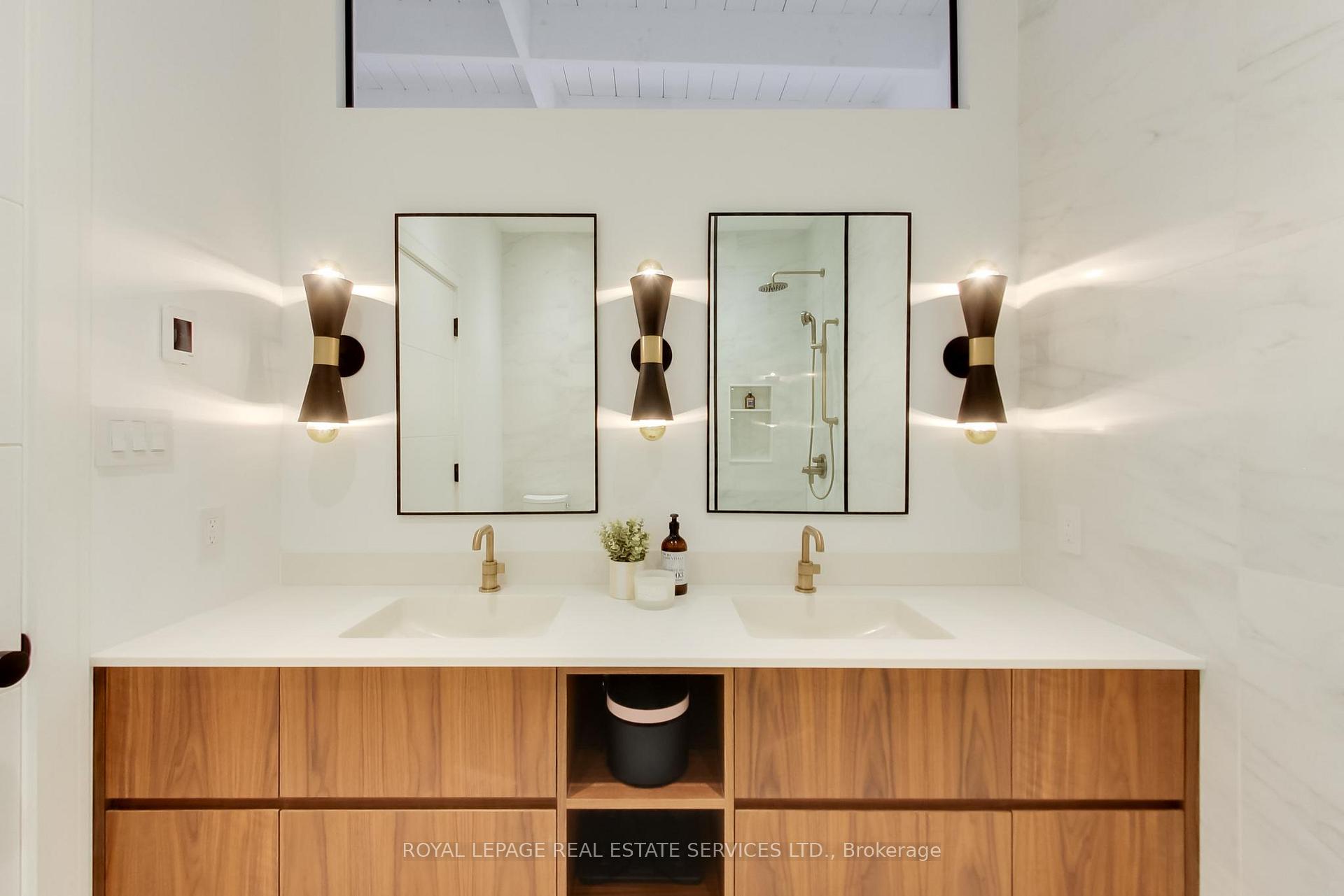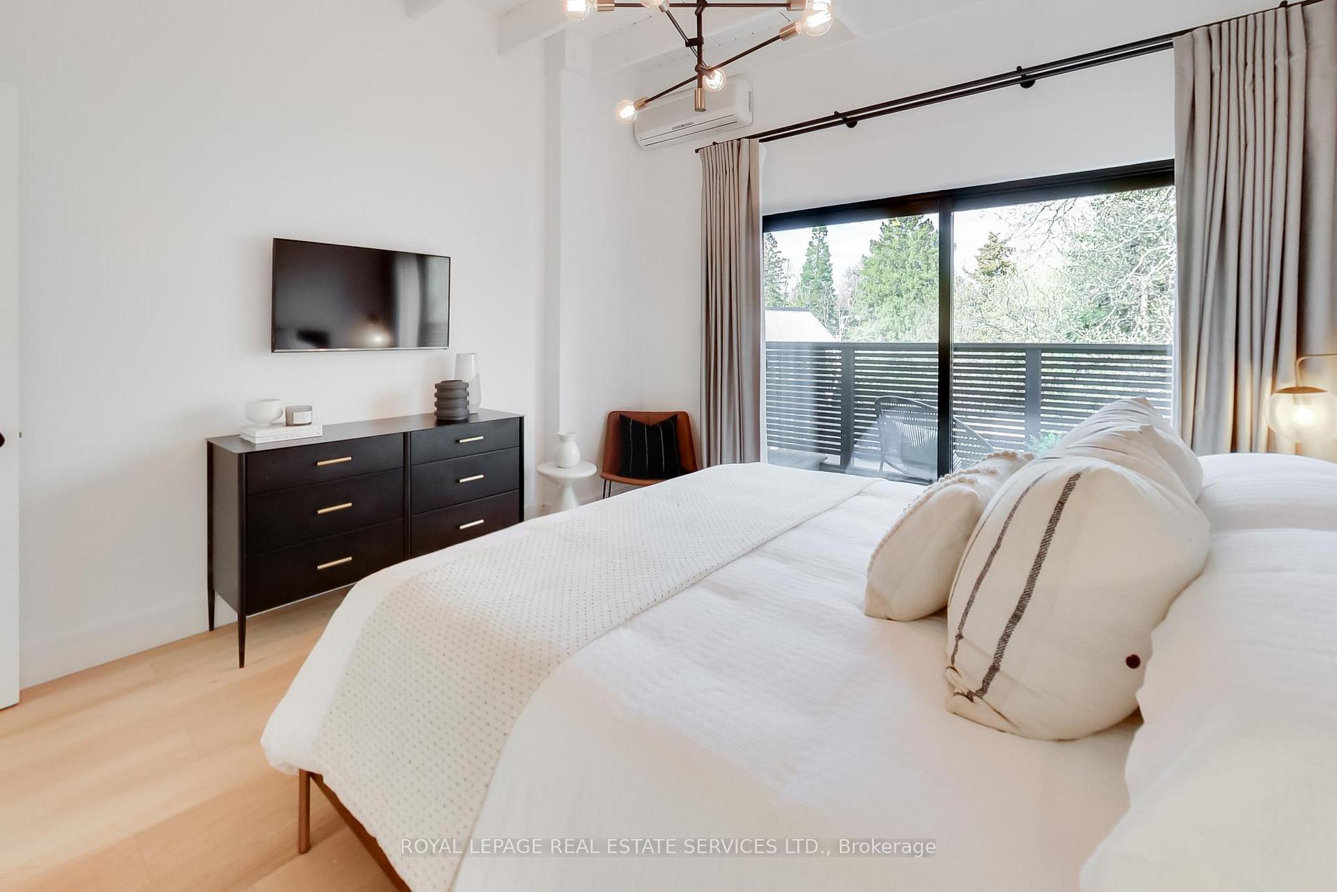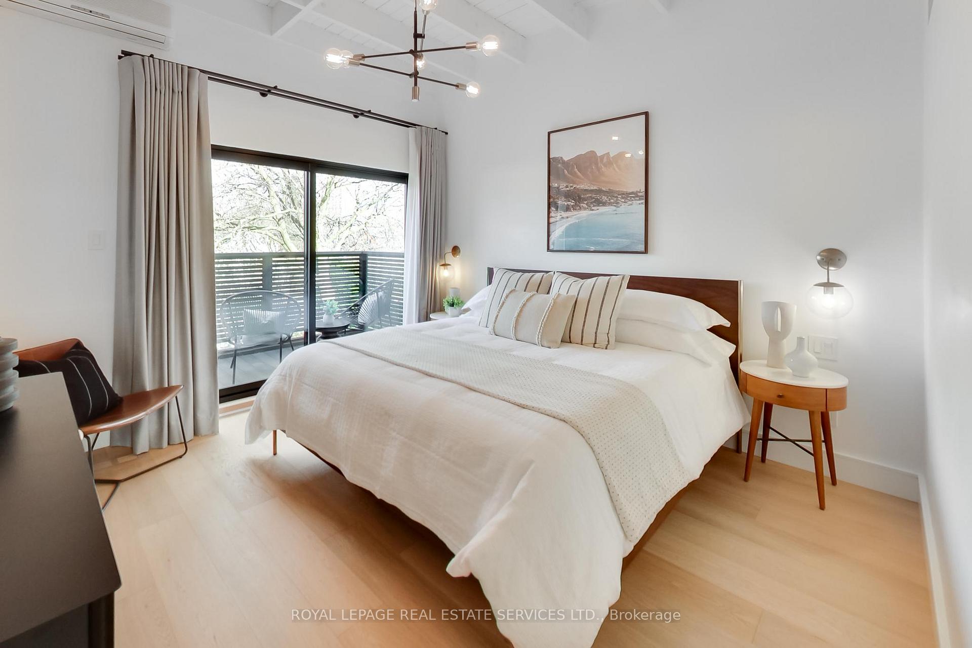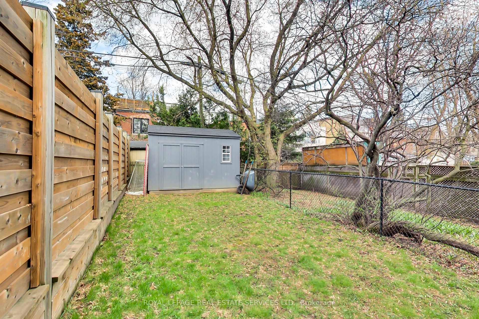 In the heart of the Annex, this exquisitely redesigned three-storey single-family home blends refined design with exceptional everyday livability. Gutted to the studs and thoughtfully reimagined by Palmerston Designs in 2019, it was crafted for elevated family living with warmth, function, and style. The main floor makes an unforgettable first impression with wide plank white oak floors throughout, soaring ceilings, exposed brick, and a rebuilt staircase with sleek modern railings. The heart of the home is a stunning chef's kitchen with a dramatic 12-foot island, integrated appliances, induction stove, drinks fridge, deep farmhouse sink, multiple floor-to-ceiling pantries, and added windows that fill the space with light. A powder room and coat closets complete this level. Sliding glass doors open to a tiered deck and an extraordinarily deep private garden beneath a mature tree canopy, creating a rare urban retreat for entertaining and quiet family moments alike. The upper floors offer an outstanding family layout. The second floor features two spacious bedrooms, each with a dedicated bathroom, a separate family room, plus a laundry room. The entire third floor is devoted to a luxurious primary retreat with exposed brick, vaulted ceilings with exposed architectural beams, abundant natural light, a walk-in closet, spa-inspired ensuite, private balcony, and a flexible lofted space ideal for a home office, lounge, nursery, or creative studio. The 2nd floor family room and 3rd floor loft space could be enclosed for additional bedrooms if so desired. The finished lower level, with tall ceilings and a separate entrance, is set up as a dream home gym and offers incredible versatility. A rare opportunity to own a truly design-forward family home on a deep lot in one of Toronto's most coveted neighbourhoods. Steps to Dupont Subway Station, Jean Sibelius Park, top rated public and private schools and the bustling retail of Bloor Street plus fine dining on the Dupont Strip.